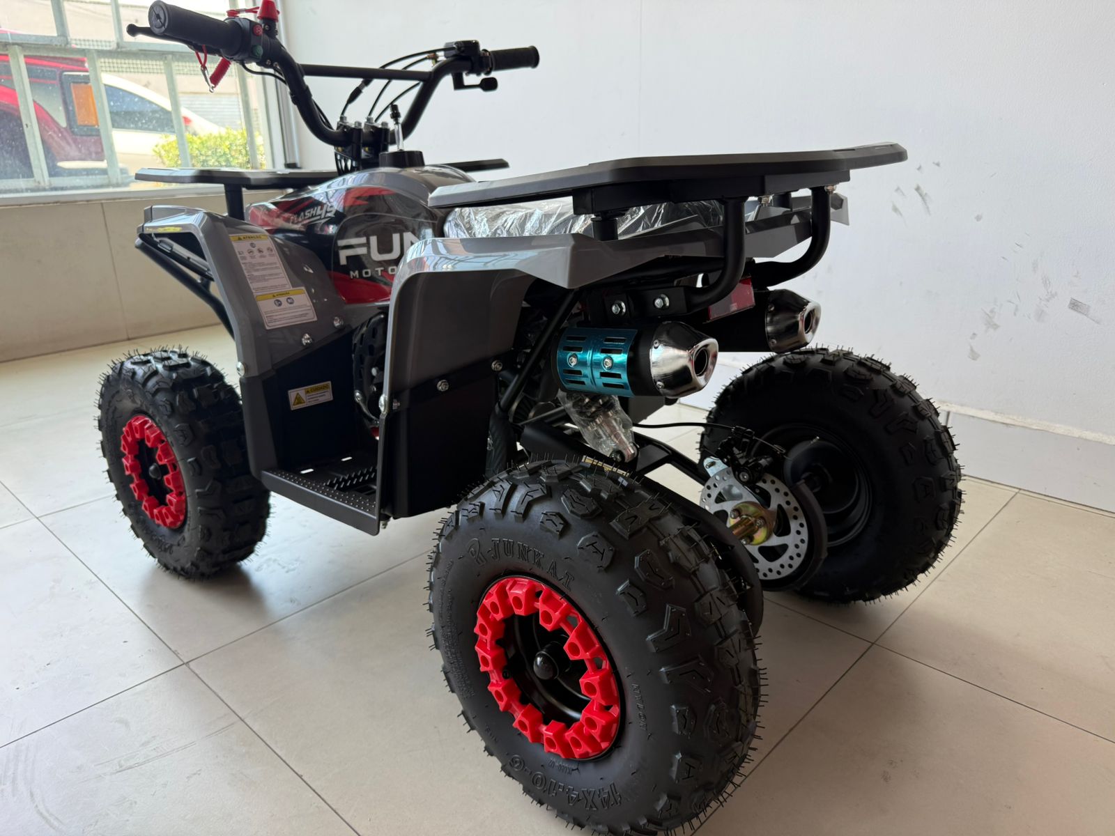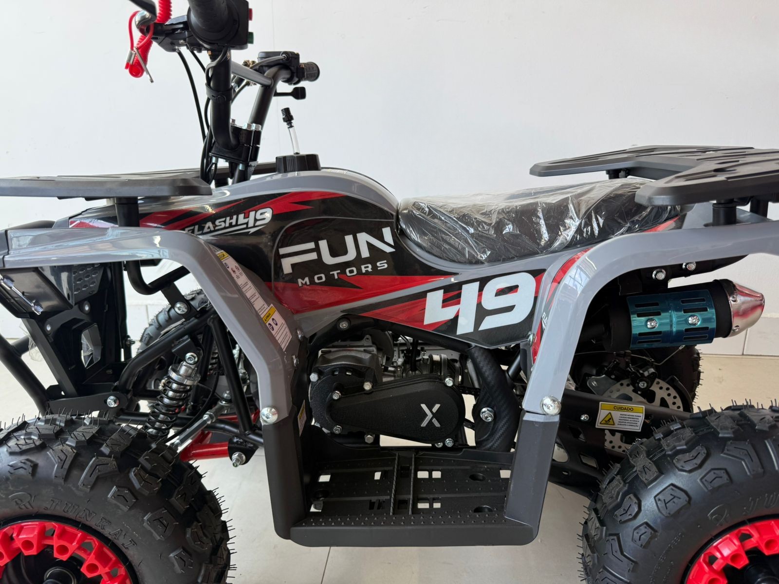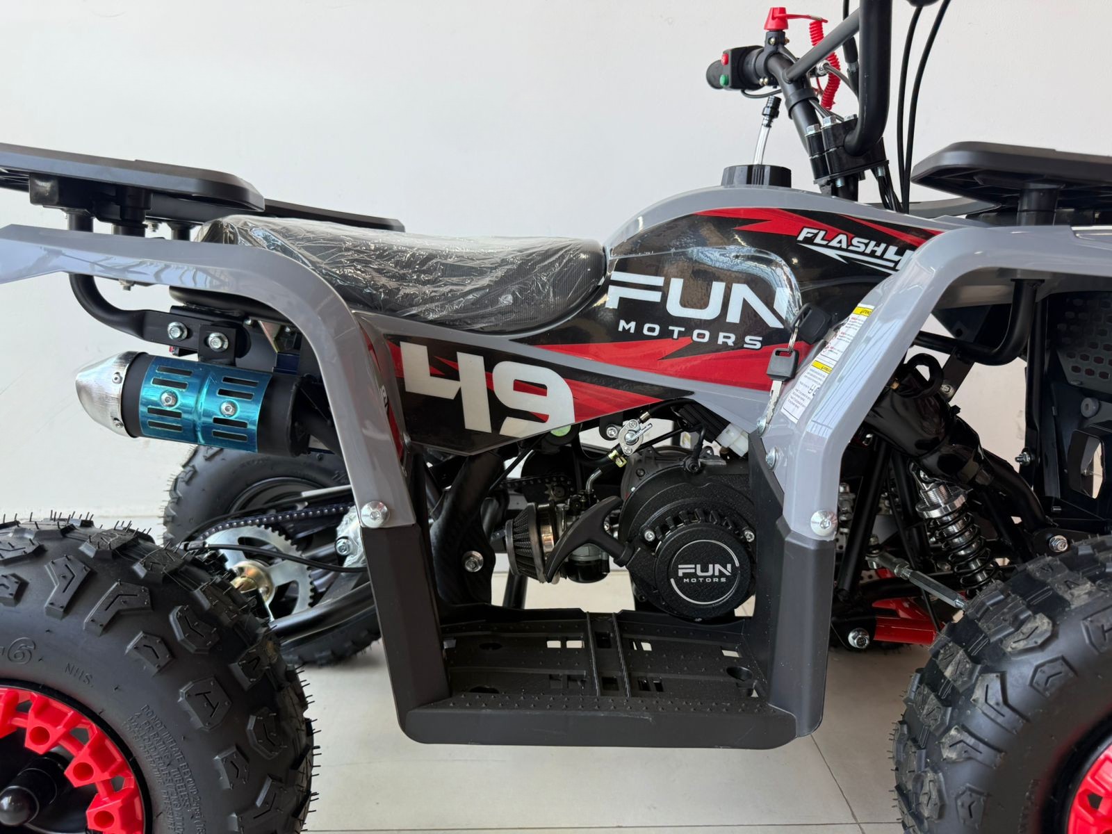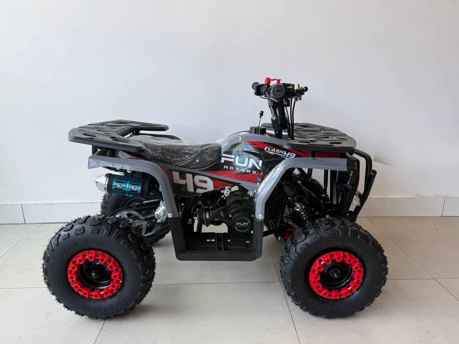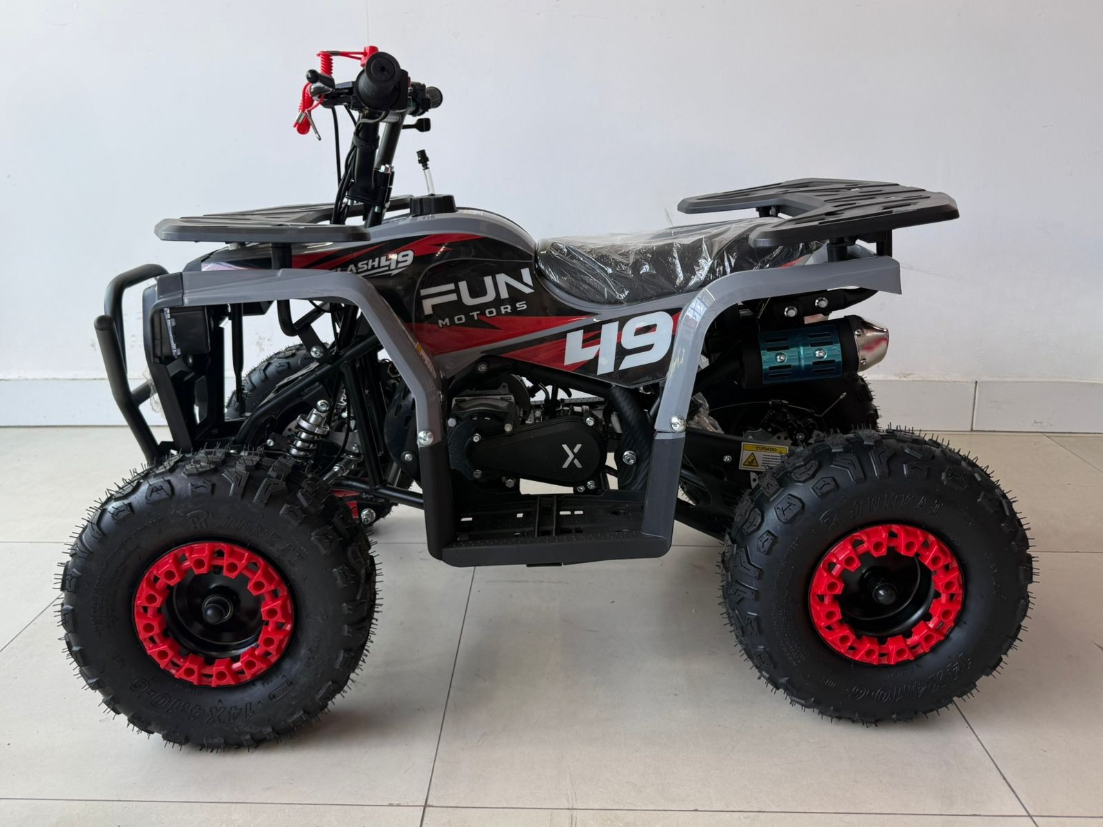 O Flash 49 da Fun Motors é o mais novo mini-quadriciclo para diversão ao ar livre. Atingindo até 40 km/h, ele impressiona pelo design robusto e cores vibrantes. Com transmissão automática, freios a disco, e amortecedores hidráulicos, oferece uma condução suave e segura. A partida elétrica, o botão corta corrente, o limitador de velocidade e o cordão de segurança garantem tranquilidade para os pais. Confie na qualidade da Fun Motors para uma pilotagem segura e emocionante. O Flash 49 é mais que um brinquedo; é um convite para explorar e criar memórias em família. Faça seu próprio caminho com o Flash 49 da Fun Motors.